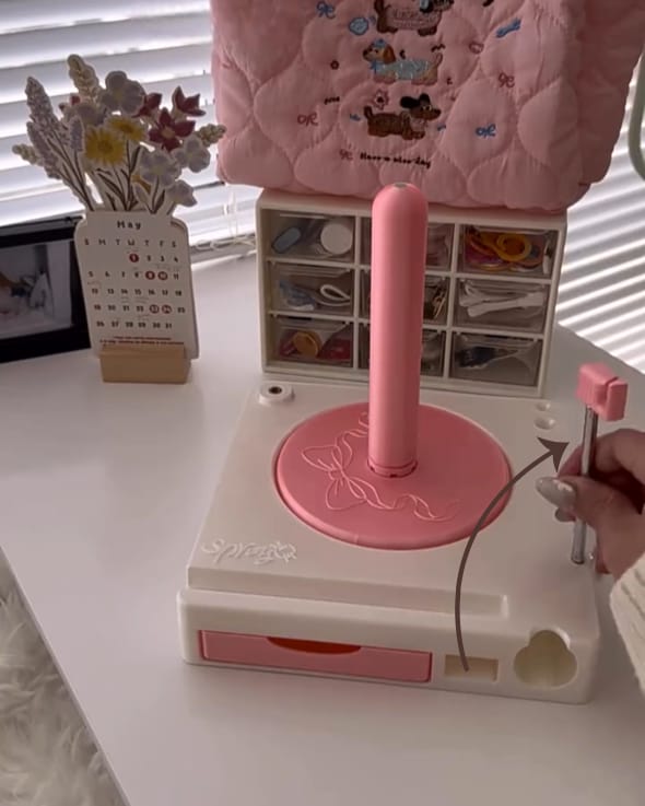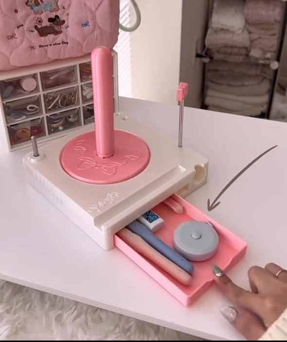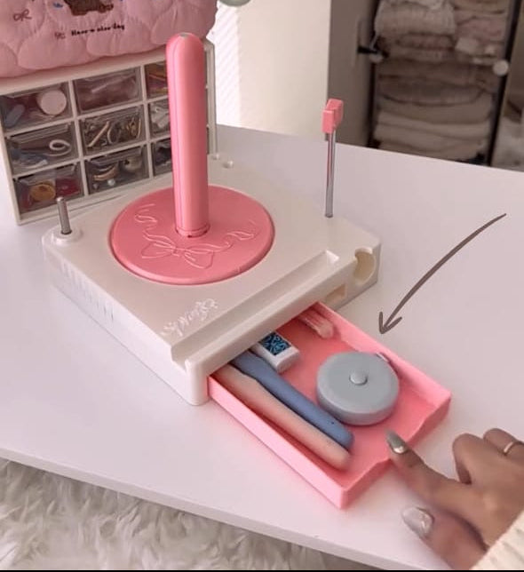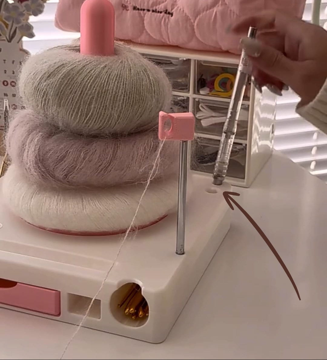 The rotating base is placed in the middle of the tool. The yarn rod is placed on the rotating base; the rotating base rotates around its own axis while knitting.