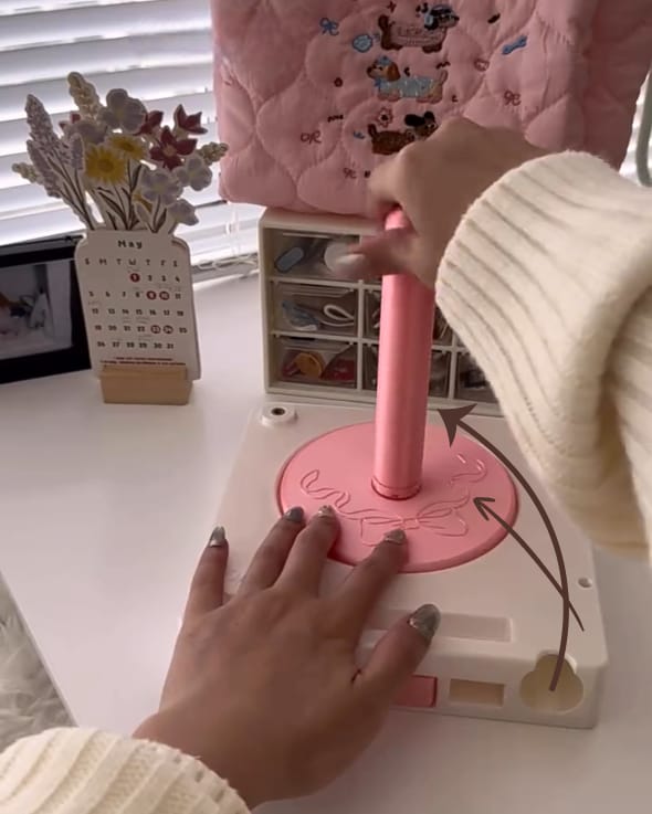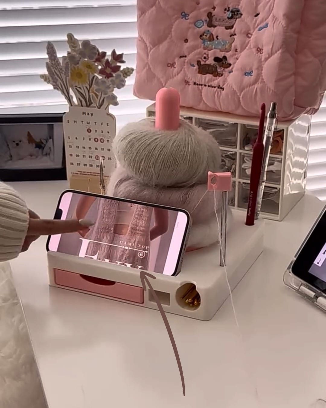 The phone is placed on the Phone Stand and you can do the knitting you want by watching the video.