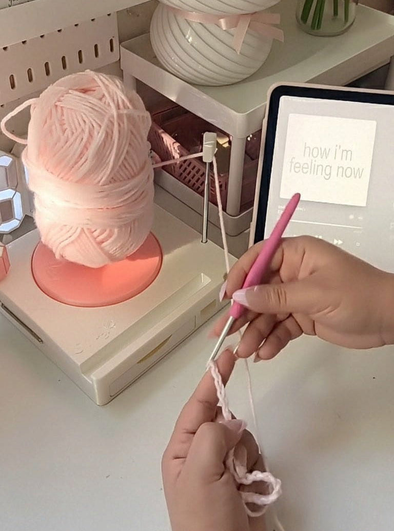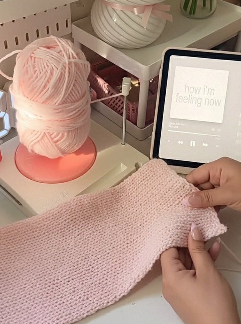 The phone is placed on the Phone Stand and you can do the knitting you want by watching the video.